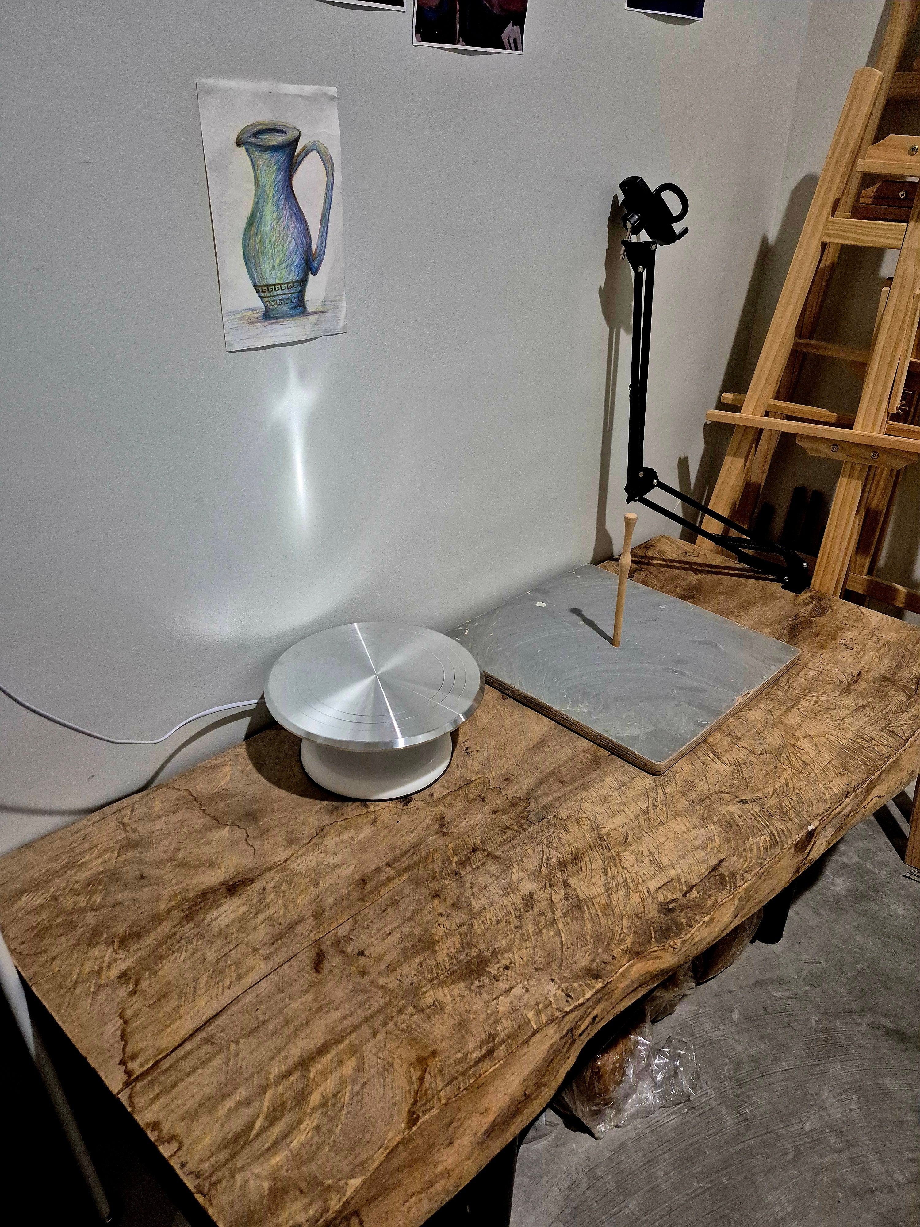 This is where every piece begins — at the wedging and sculpting table. A simple space where clay meets hands, and form slowly takes shape.